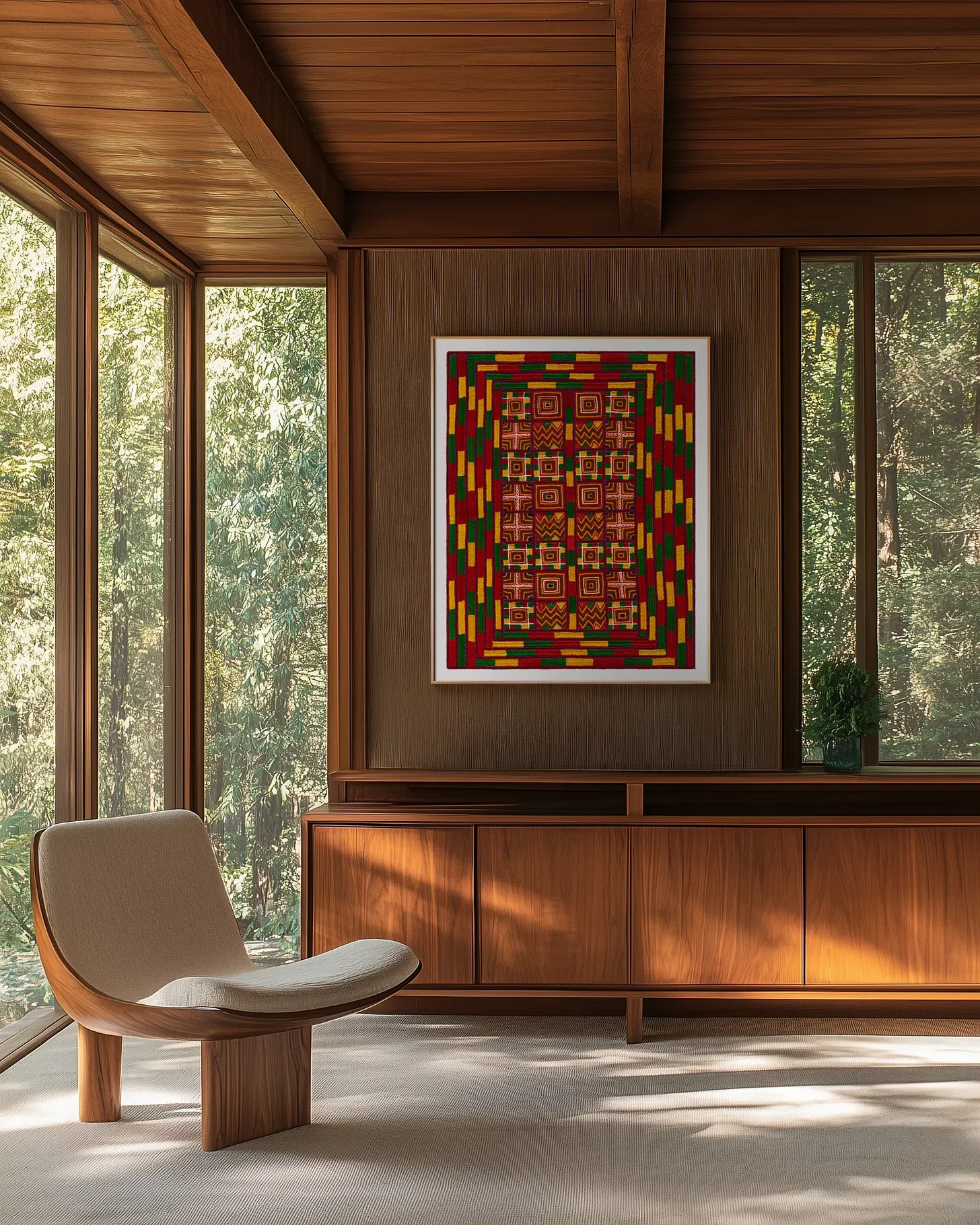 Bold, geometric, instinct-driven compositions that reminded me of Calder tapestries. The kind of work that would hold its own on the wall of any modern home. And the graphic strength of the designs made it immediately clear that they would translate beautifully into prints.